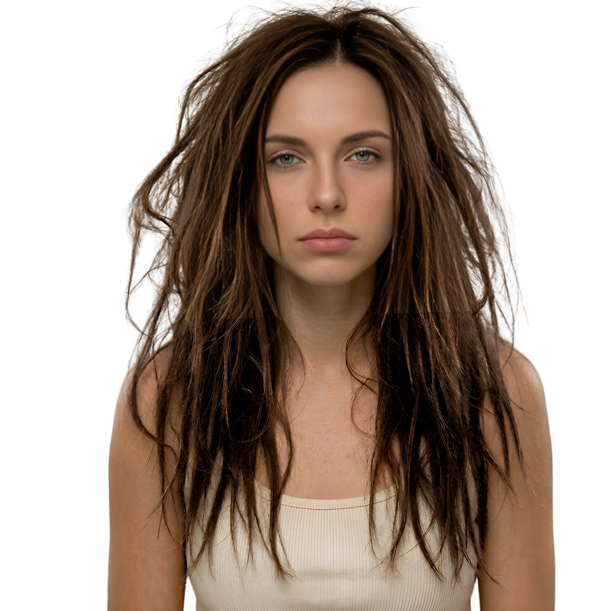 1️⃣ Antes – Cabello con frizz y difícil de manejar